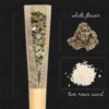 Each 2 pack of 0.5g Pre-Rolls, 1g total per container, averaging between 40-50% THC. Crafted from whole flower of a single pheno and hand-infused with first press, solventlessly-extracted Live Rosin Sand that matches the dominance of the pheno. Constructed in unbleached, rice paper cones for an even burn and maximal taste preservation. Fitted with a Dutch crown tip, you’re ready to light up a harmonious blend of solventless concentrates and sublime flower.